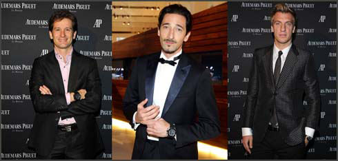 | Von links nach rechts: Der ehemalige F1 - Fahrer Jarno Trulli, Schauspieler Adrien Brody, AC Milan Fußballspieler Maxi Lopez. |